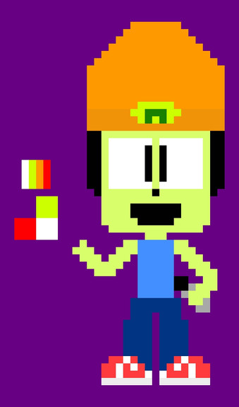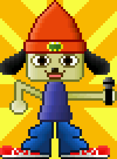 Sprite of Parappa from the PS1 game titled "Parappa the Rapper". The game was one of the earliest rhythm games, if not the first. I remember renting from a video store once, I think Hollywood Video? Dunno. Right now I'm searching for a copy to buy. Not too much luck.The sprite itself is okay, though I think I could've made the left arm (his right arm) move a little less weird, and the overall face bugs me a bit. Oh well.