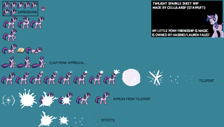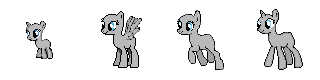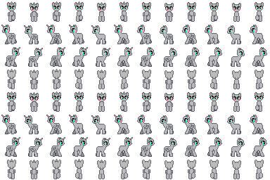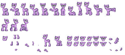 Alright, a small update to this pony sheet.This includes more poses, and some other things. Most of the added poses was requested (specifically the Applebucking, facehoof, and bucking bronco/stallion thing). More facial expressions are also included. Towards the top right corner are sprites for pegasus wings, a filly, and some different perspectives of the pony base.