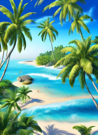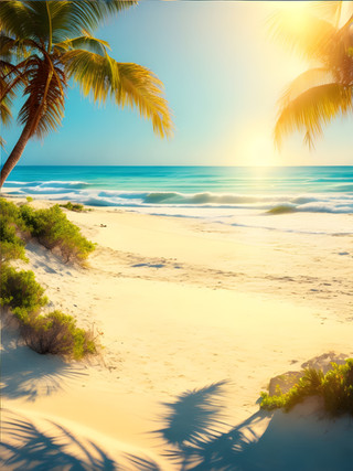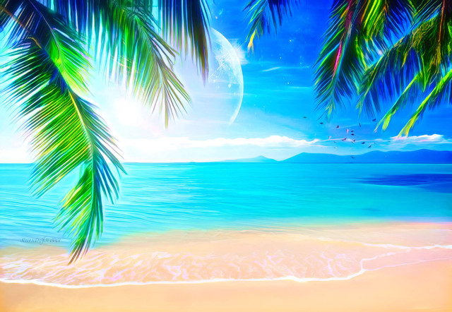 Prompt:Β ocean, stars, moon, calm, birds, palm trees, beach, reflections, water tides, 8k, highest resolution, masterpiece, sunset, ocean tides