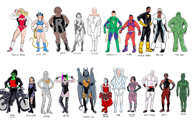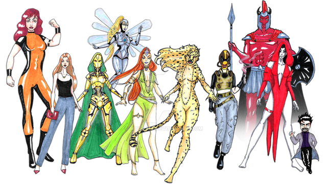 I recognize all of these characters save two. The one between Power Girl and Phsyloke, and the one between Kang and She-Hulk (though her uniform indicates she is an X-men). Great work all around!