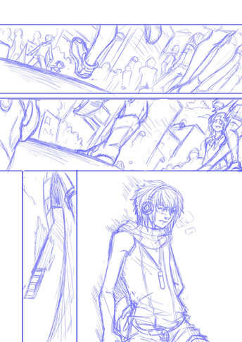 Now, with the panel planning nearby, you just start sketching the pages. You're going to have to draw a lot, and later is going to be inked/cleaned in some way, so it's best if you leave the detailing for the inking, and sketch roughly for now (not too roughly)