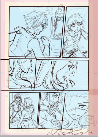 Now, with the panel planning nearby, you just start sketching the pages. You're going to have to draw a lot, and later is going to be inked/cleaned in some way, so it's best if you leave the detailing for the inking, and sketch roughly for now (not too roughly)