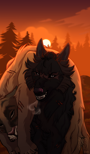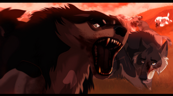 The sky seemed to be bleeding blood, the colours not their usual warm morning glow as the moon began to become less strong in the sky. Everything seemed to be glowing in a red light as the wolf slowed to a stop, reaching the resting wolf. Sleeping like a newborn pup after its first nursing. How dare you rest, you disgusting bastard. He thought with a snarl, his face twisting as he barred his teeth.