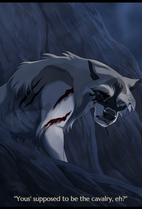 The dark wolf listened, gaze focused on the sleeping wolf. ''You already know that I do not fear death, Ghostface. There is a chance our paths will be diverging towards different paths tonight, my friend.'' His words caused the bird to puff out his feathers in alarm, eyes round as he watched Macgyver lower himself as he got into a hunting stalk. The dark wolf crept towards the sleeping wolf, the scent of death and rot growing stronger, souring in the summer nights heat. Though, by this point it was heading toward dawn.