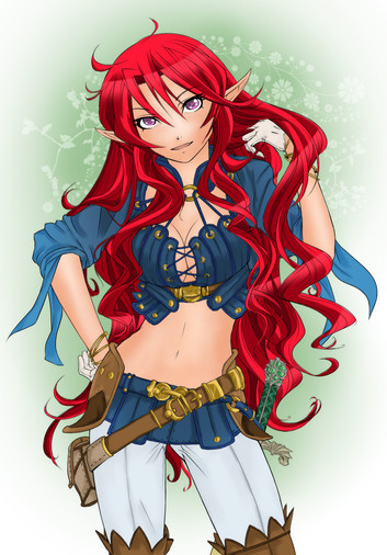 Commissioned half-body piece for 's OCShe was fun to draw and color. Especially the details on her clothes and belt