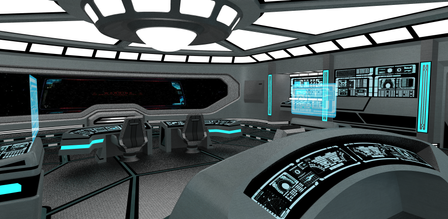 Lovely and unusual high-tech feel on the library. I like the turqouise of the floor and the look of the shelves and digital files.Β