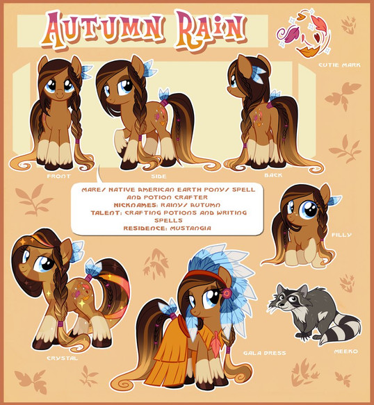 ^^^ True that. Autumn Rain is really pretty and all, but it would've been nice to see what tribe she was modeled after. Oh well, as long as she's not Pocohontas Pony.Β Β
