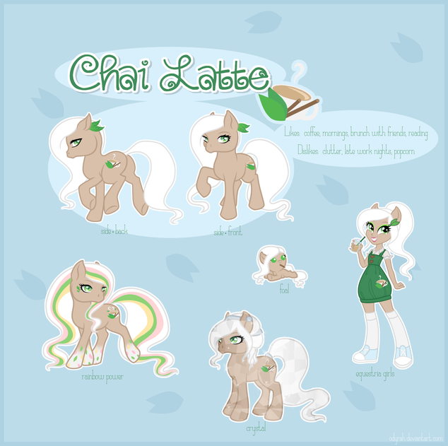 What's her given\original name? Since she's a tea-maker\works in the tea industry, it's propably something with Tea or Leaf in it or something similiar, but that would be too obvious & she would propably like it. Maybe these are actually her initials? She could be Essentia Xaralafidia Orubehartney? (It sounds more like a W.I.T.C.H. Guardian than a pony. Or Final Fantasy. I do not think people in Winx have last names.)