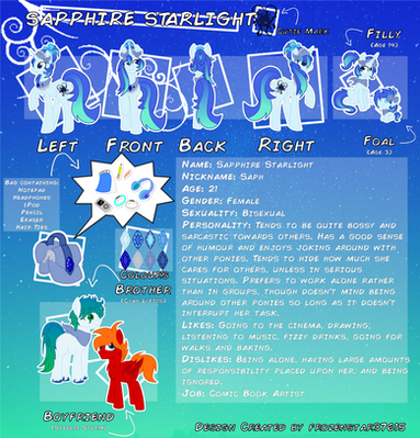 I've been seeing these "OC Reference Guides" ever since the handful for the Bronycon mascots. Were those made by you too? I can't quite find them in your gallery if they are >_<