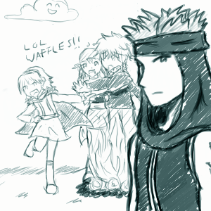 Oh, and I read more of your convos with Citrus, which thus gave me inspiration to doodle a comic of Legault singing ABC to Heath. DARN IT. D: