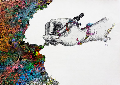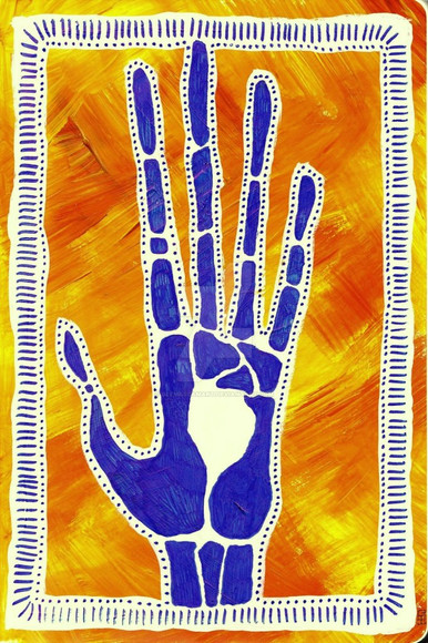 I loved doing this.I traced around my hand onto some flock-textured wallpaper, cut around the flock pattern and hand outline, then played about with paints on some paper and combined the two!