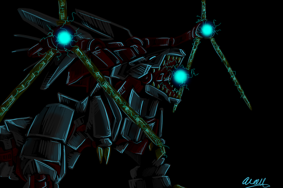 Woo. Done, finally. -falls over-Dessy for . I tried some new stuff wit' him, like mixing steel effects with block color, and coloring the lineart beforehand. (Probably best seen on the shiny parts.) Overall, I rather like it. :3
