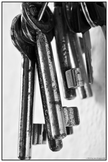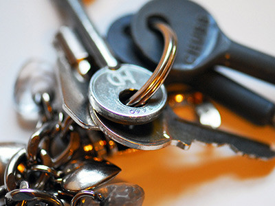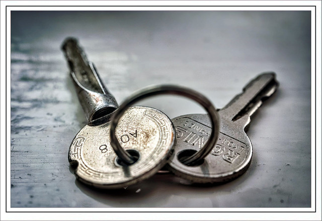 A key on a keyring. the number 91 stamped into the metal.