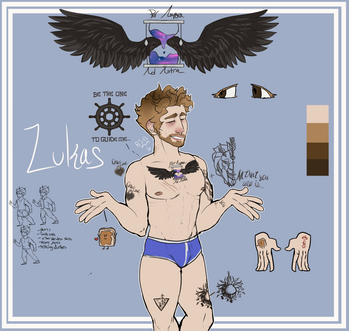 -Lightning/electricity is mostly associated with his anger (and he can get very, very angry) but it can happen with other things as well. Typically purple electricity is with his anger. Sometimes he'll get a bit sparkly when he's frustrated, but it's usually blue. If he's also anxious (or, startled very very suddenly) it'll be yellow; but that's usually very short lived. Like if you, well, shock him; to put in a way. Don't intentionally startle him or wake him violently otherwise you might get zapped. He'll also feel bad about it, so extra don't do that.