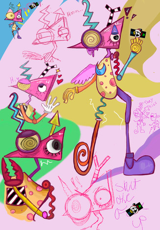 "Wait ... What is this? Is this some sorta practical joke? Guess I'll just go with the script. !#? is a famous thingamajig known for inventing many unorthodox inventions that may as well be novelties considering everyone is puzzled with their purpose, though its personal favorite is the Handy Hat (patent pending).Theorists, Physicists and people on forum boards have forever puzzled the origin of this creature and it's namesake. Is it a multidimensional being? A robot? A GOD? Hell, for all we know, he doesn't have a clue....