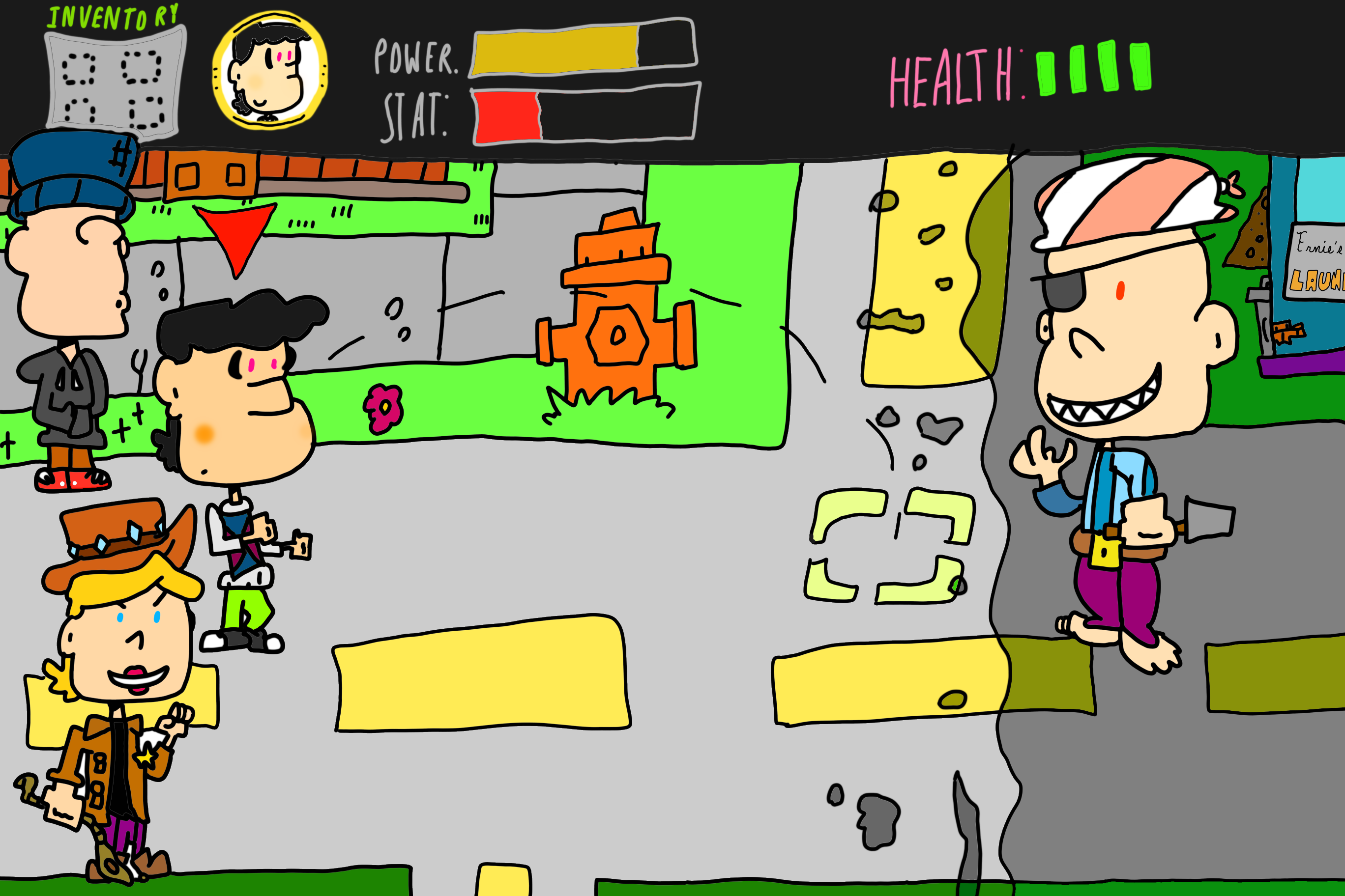 Well, here's a cute little scamp. His entire design changed from point A from point B, having a Knack-like aesthetic whence he was assembled from various household items. Slowly but surely, he got a more sock monkey build. Another goal I set out for in this character was giving him the stupidest name possible (Honorable mentions go to "Gung-ho" and "Hatface Mchaymaker"), until I decided on !#?, a name so ridiculous it's technically not a name.