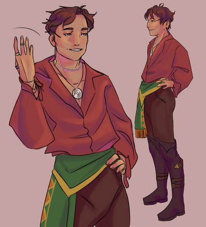 #characterdesign #originalcharacter #fantasycharacter #referencesheet #digitalart #dnd #medieval #bard #blonde #browneyes #color #dad #fancyhat #halfelf #mustache #panflute #rose #tired #maletofemale