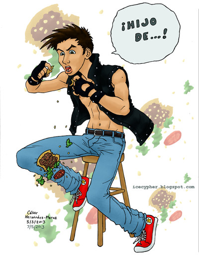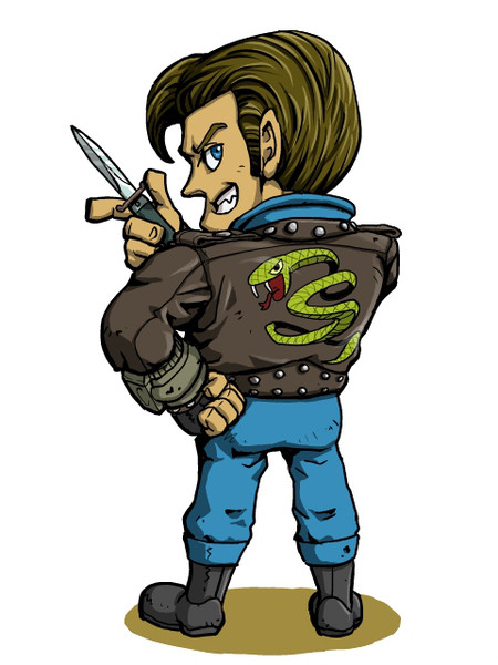This is Rictor's costume from when he ran away from the New Mutants. He had troubles with Cable and he also wanted to rescue Rahne, who was left behind at Genosha (she chose to stay, but it was not exactly of her free will). He only wore this for a couple of panels (which were "drawn" by Rob Liefeld), but I felt there was something cool with this combination of clothes, and that's why I selected it for the fourth chibi pic of Rictor.