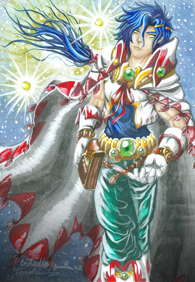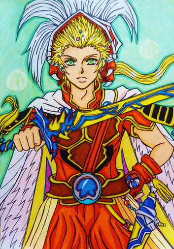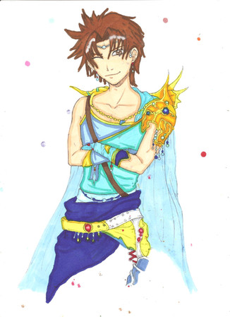 Wooo... I suck at watercolors. I guess some practice is in order.Anyway, I really wanted to draw ElAzul from Legend of Mana (I LOVE THAT GAME). So I used a ref pic (wish I could've found a better one, 'cause it didn't help much at all) of ElAzul from the game, as well as a couple of James d'Arcy just for the hell of it. XD