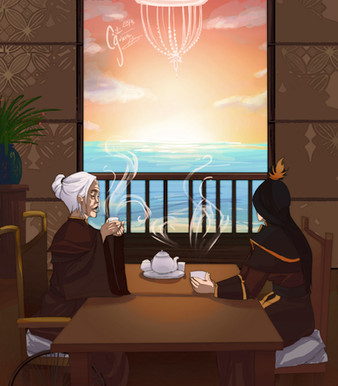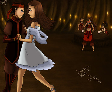 The scene I guess takes place when they were dating back then, and I imagine Toph and Aang making fun of their kids while going out. lol.