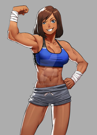 Really love the design of her sports bra fitting her Power Suit colors. Β I also could see Sammy having a few muscles, especially her abs that she used to have a long time ago. Β Very nice.