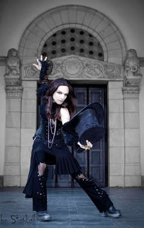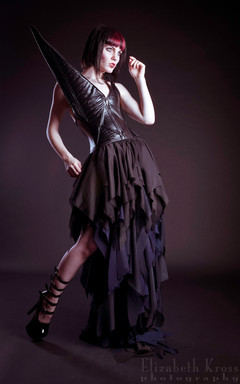 Ah...well, I'm not a critic, but the model is pretty, the outfit is hot, and the spikes coming out from the bottom look pretty deadly. She's all ready for a gothic prom!
