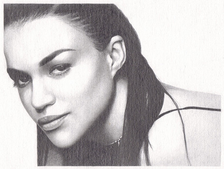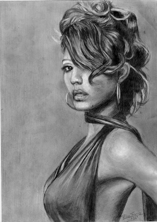 Remind me never to try to do something that requires precise detail work like the jewelry in this picture with these colored pencils again. It is very difficult to be precise with them. I picked up some Prismacolor Verithins while I was working on this, and they helped some, but I had already done a significant amount of the jewelry (like the chain, which came out very badly), so much of the jewelry is kind of fudged.
