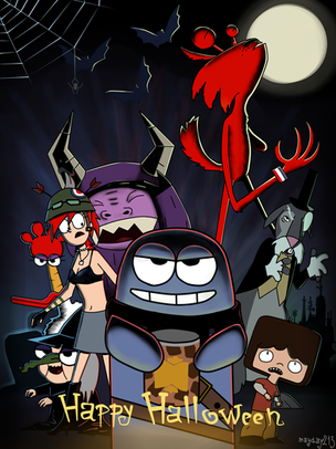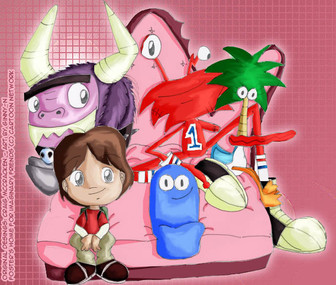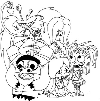 Second Death Note / Fosters Home for Imaginary Friends crossover picture. Based off of one of (I think number 12) the covers of the manga. Slightly altered since Goo, if I had kept her in Misa's original position, would have been obscured by Eduardo's horns.Eh. Not my best, but..