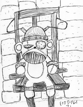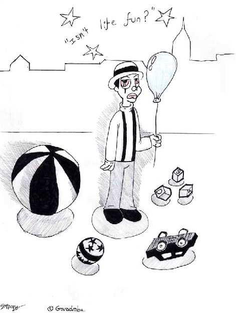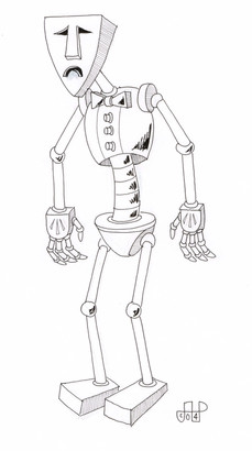 On account that my scanner is no longer working I had to fax this to my friend Jess in Perth, and she scanned it for me and sent it back to me through the net as a jpg. Once I get my claws onto Photoshop I'll clear this, and colour it.Learn more about Strong Sad here [link] as it's his character movie. He's scattered in the site, so hunt him out. And deck him with balls too!