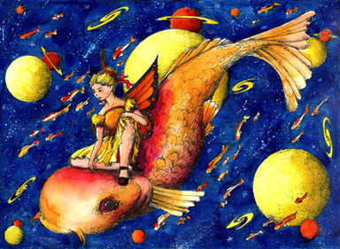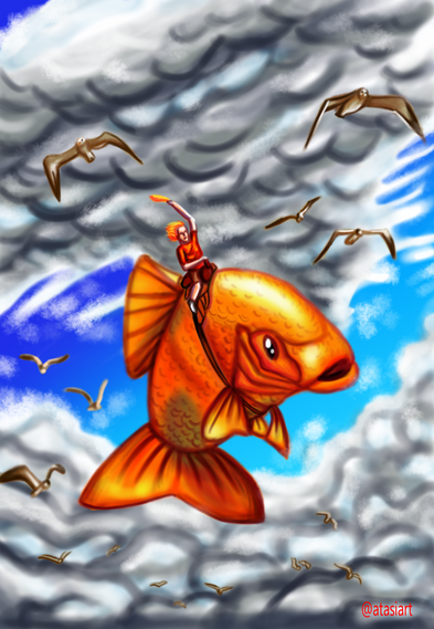 #sea #fantasyart #fairytale #surreal #sky #flying #magic #childrensbook #clouds #cloudscape #colorful #feathers #fish #flags #oil #oilpastel #pastel #race #racing #traditionalart #traditionaldrawing #whimsical