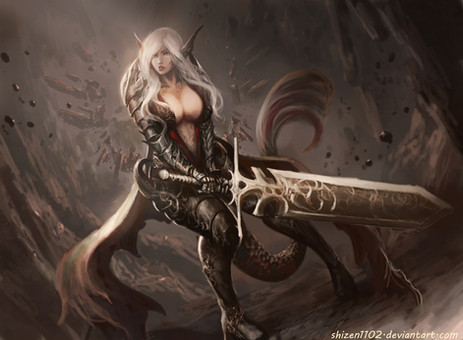 she seems so strong i'm sure she'll slice them^^.Amazing work, the light on her armor is perfect and i love the mirror effect on the blade.