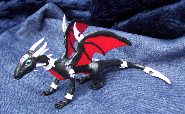 I DID IT! I finally finished this and it took so long. I used super sculpey in order for it to be sturdier which was a good idea due to the really thin limbs! I have never tried to make anything this detailed before but it was fun and I'll probably do more of it.So this is Cynder the Dragon from the Legend of Spyro Dawn of the Dragon game. I wanted to make her as I played pretty much the entire game as her