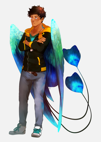 This is Matthew, he is a South African boiii, he is an Eraser, so poor thing won't live too long. He's very friendly and he's actually a good guy after all the abuse he's been through at the hands of the school and Itex.His wings are very big so he has difficulty hiding them properly, and he's very hairy. He speaks Afrikaans, and has difficulty speaking English but does understand enough to get by.