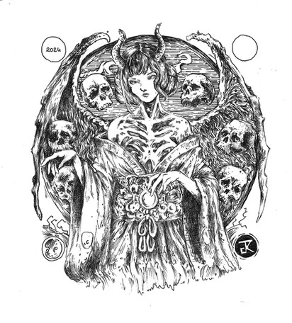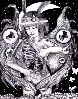 This is way too cool and alittle scary too! I love how stark the contrast is between her hair and skeleton
