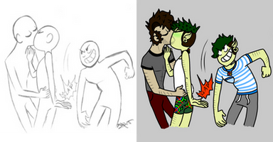 Well as you can see they're taking a picture. Cyshiphen's face says, "Come ere and lets take this picture together" and Memphy's like, "I'm good over here"Β
