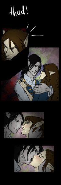 After Hector kidnapped Chad for him, Cristobal quickly entered the backdoor to his hotel with Chad under his arm. Once the vampire closed the door carefully and quietly Chad broke free and backed up into a wall, "Whoa, man! Who the lump are you?!" he asked, terrified that this person's a killer or something. Cristobal pulled his finger up to his lips and asked, "Shhhh.. Do you really not remember me?" Chad furrowed his brows and scanned the blond vampire up and down, sadly, he didn't recognize him, "Er.. No." Cristobal the blond vampire sighed and walked up to Chad, "Here, let me help you remember.."The Vampire stretched Chad's shirt to see if the bite mark he left was still there, surprisingly for him, it was, "Wow, it's still here? Look, don't you remember I did this?" he questioned Chad, caressing his bite marks lightly. Just then, the vairy had a flashback and finally remembered who this vampire was. Cristobal smiled sweetly at the vairy and asked, "Oh, did you remember?"
