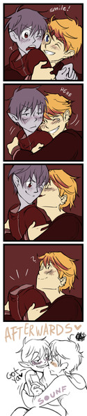 George and Tattle were playing Truth or Dare and George chose dare. And so Tattle dared George to kiss his cheek and THAT HAPPENED ^^^ ))George(c) MINE