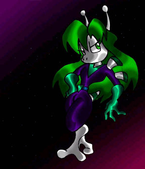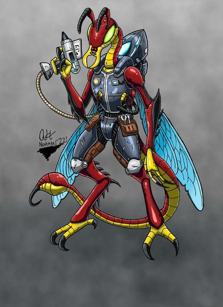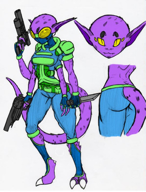 This a redesign of my OC Sally Skuttle; a super smart, alien bounty-hunter, roach girl. Nuff said for nowThis is something for this [link]