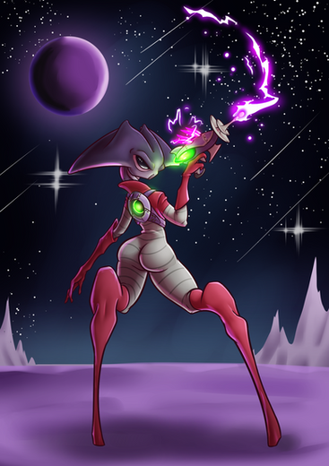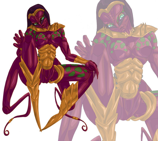 Excellent art, CR. Though, I'm no fan of roaches, but Sally is a very hot and sexy roach alien. Great design and details. Awesome pose, colors, bg and expression.