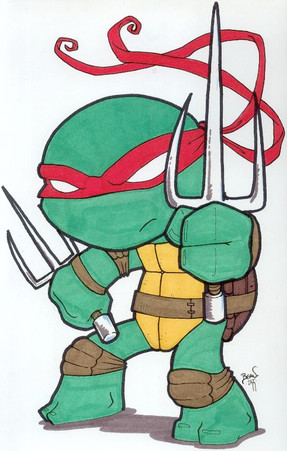 Another for the collection. I've been trying to get back into the swing of things for the last few days..so just to help get my process back, I did up Raph here for ya.Raphael is the best example of a rebel amongst brothers, and certainly the most brutal of the 4. The original cartoon did not do his character justice..but after the first movie..they seemed to get it right, in my opinion. Chibi style-- Just because he's small doesn't mean he can't also be dangerous. Can't hate Raph.