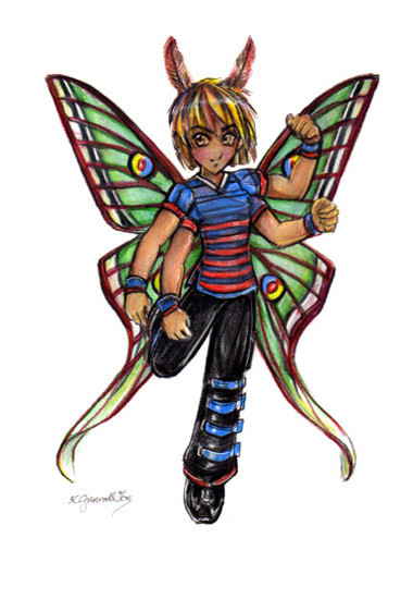 I think the layout for this one is really creative... how you've confined the background to that little circle behind the character. I like that. I'm always impressed by the way you draw clothing, too... you're always so creative with it. Clothing... is not my friend.