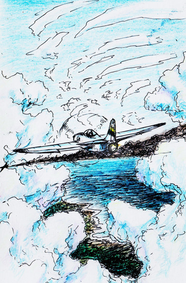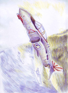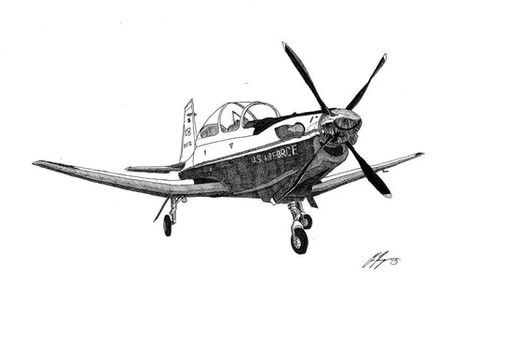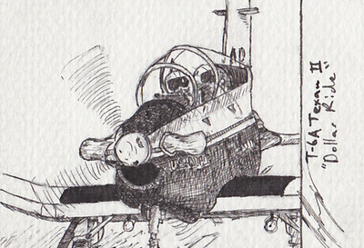 This is a head on image of the T-6. Was drawn from a picture taken by a friend of mine who had the good graces to allow me to use it. Didn't feel bold enough at the time to make a complete background.Media: Ink