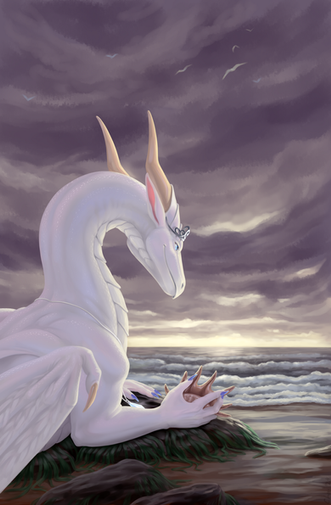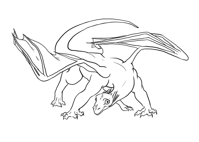 Всё-таки таких массивных существ привычнее видеть без крыльев и на земле. С другой стороны это желание заказчика и авторский стиль. Здесь вышла очень красивая светотень и структура, хорошо видно классическое, близкое к рептилиям и динозаврам строение. Особо хороши задние лапы, очень естественно смотрятся, прекрасно читается их положение в пространстве. Касаемо позы и положения крыльев во время полета не уверена, что это устойчивое положение, но возможно персонаж собрался пикировать, резко меняя направление движения. Допустимые позы в полёте это весьма сложный вопрос