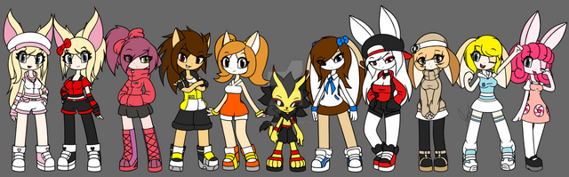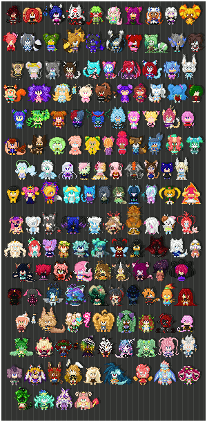 • Ruby Moon The Rabbit • China The Chao • Coloris The ??? • Sapphire The Bat Cat • Meanie The Chao • Meenah The Succubus • Tinker The Falcon • Sugar Rush The Seedrian • Chisa The Rafflesia Seedrian • Droso The Sloth • Roxy The Skull Seedrian • EXE-Cute The Echidna • Tanner The Clydesdale • Savannah The Seedrian • Shira The Seedrian • Kali The Thistle Seedrian • Splat The Shiba Inu • Roobius The Rabbit • Marzipan Moon The Rabbit • Amber The Kangaroo • Devola The Seedrian • Kairi The Crab • Bon The Alien • Bitty The Sea Angel • Queen Christabelle The Bee • Jewell The Ram • Corella The Rabbit