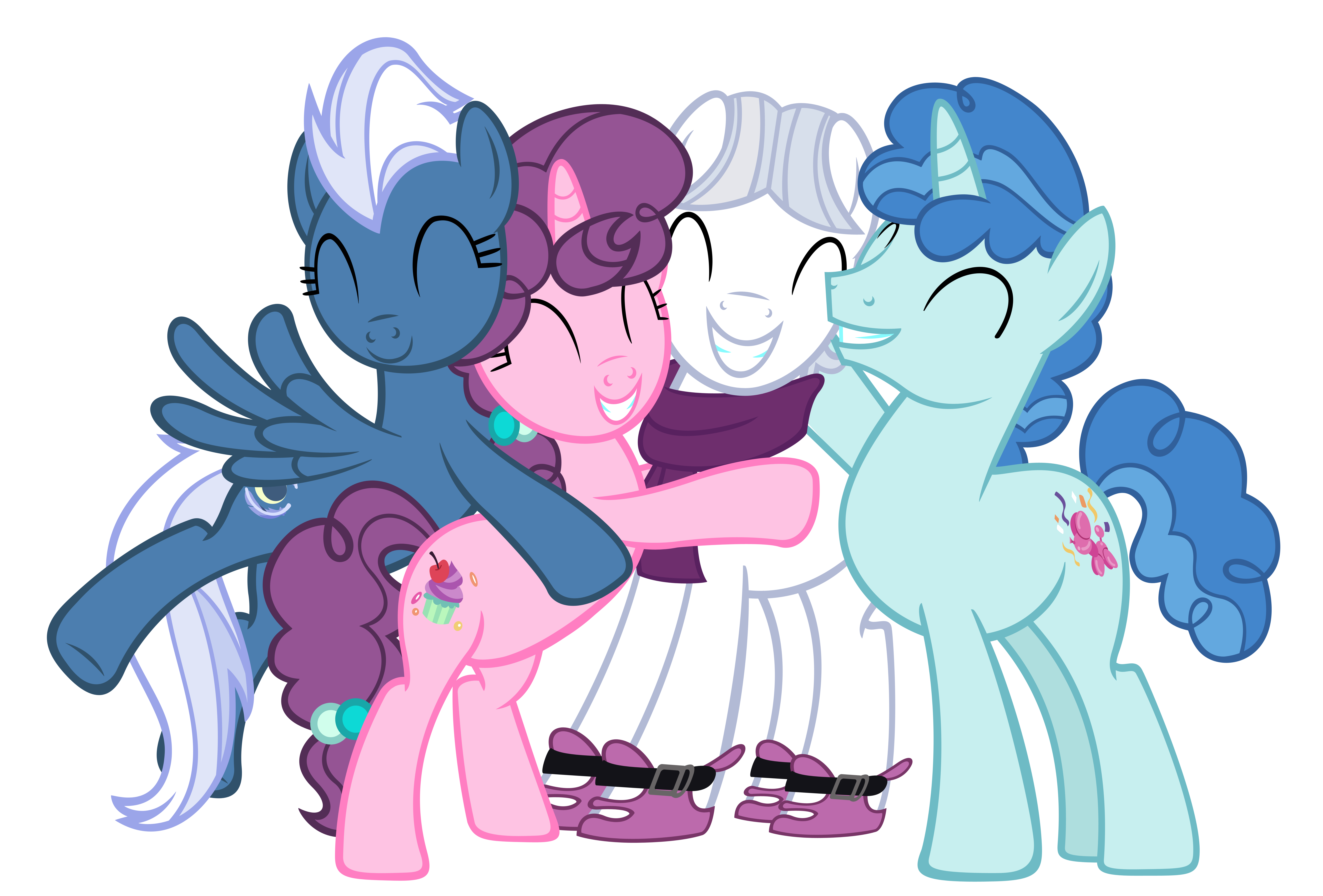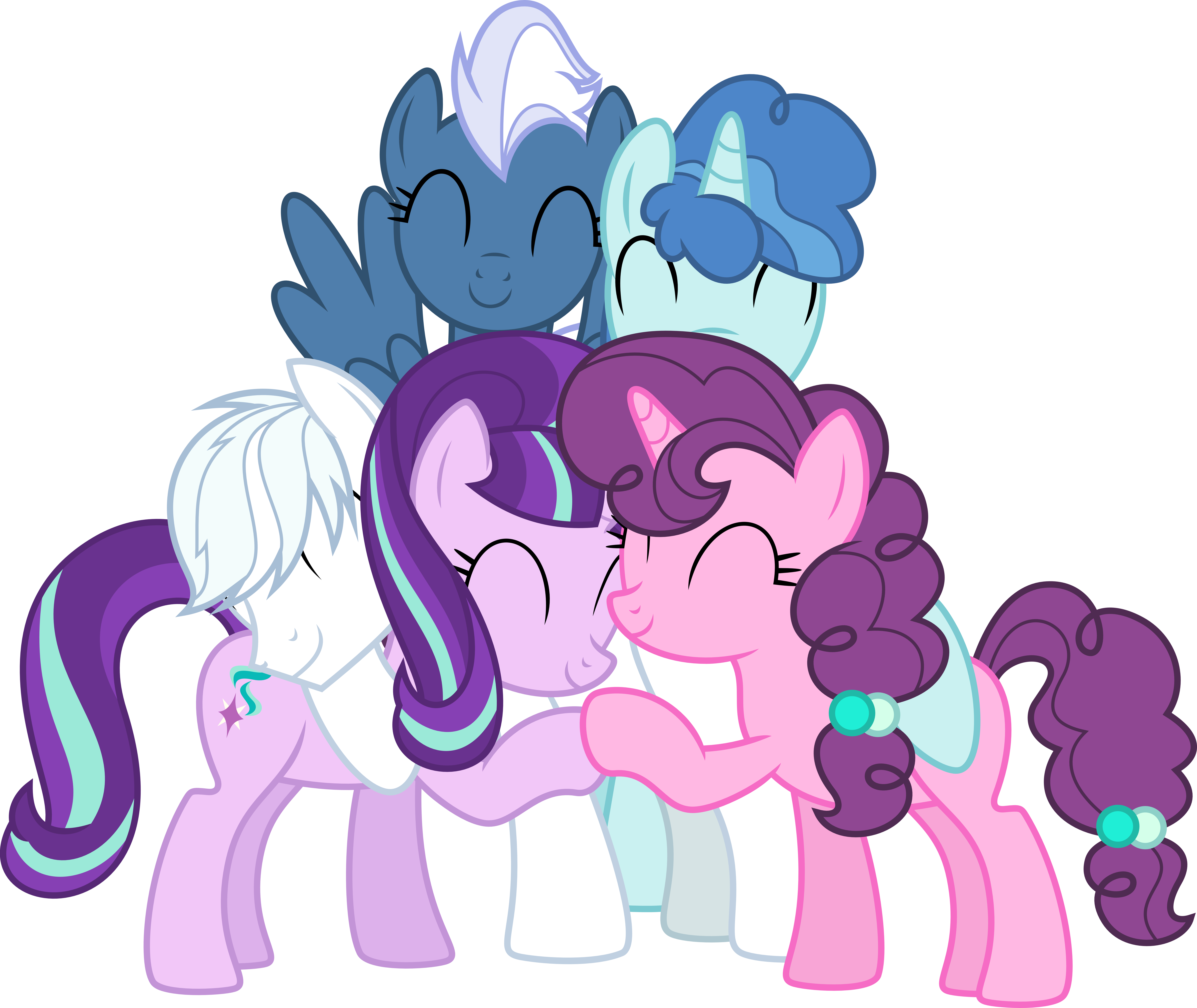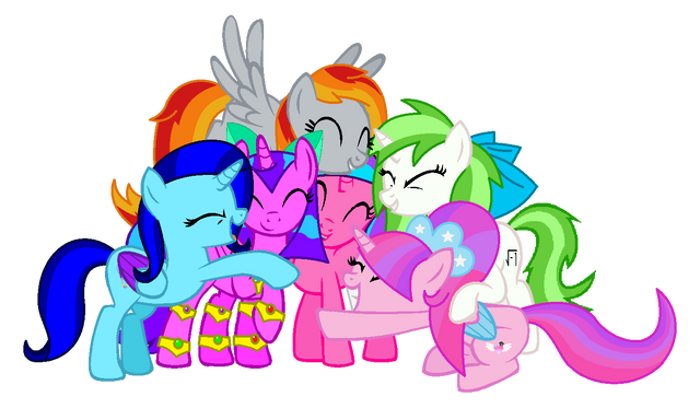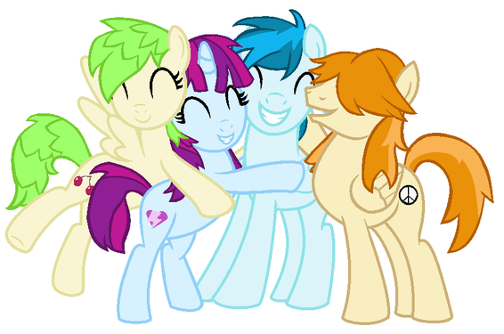 Thought I'd break into the non-equalized versions of these ponies with the big group hug!On Derpibooru, there are some three different names for this grouping, namely, "Cutie Finders", "Equal Four", and "Friendtastic Four". I personally don't mind which one sticks, heck, I might do three different works of this specific group and title them each with a different one.