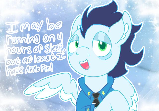 This started from an idea I've had from a while back, which consisted of just Fire Streak carrying Soarin' back home or wherever, after whatever Pi(e) Day festivities the latter would've partaken in. Pi Day or not, Fire Streak being his bro-buddy would always tag along, whether to join in, albeit a bit more..."responsibly", or just to be Soarin's chaperone or keeper, knowing that he'd often have to clean up or keep Soarin' safe afterwards (or alternatively, because no one else on the team would put themselves up to the task, for whatever reason). As "frustrating" as Fire Streak would express it, he knows ponies will be ponies and everything else that he likes in Soarin', not only as a teammate (or former teammate), but also as a friend makes it all worth it.