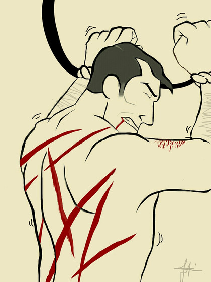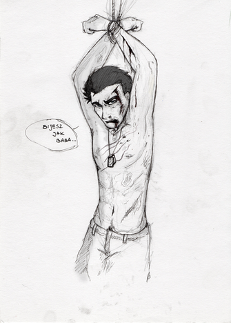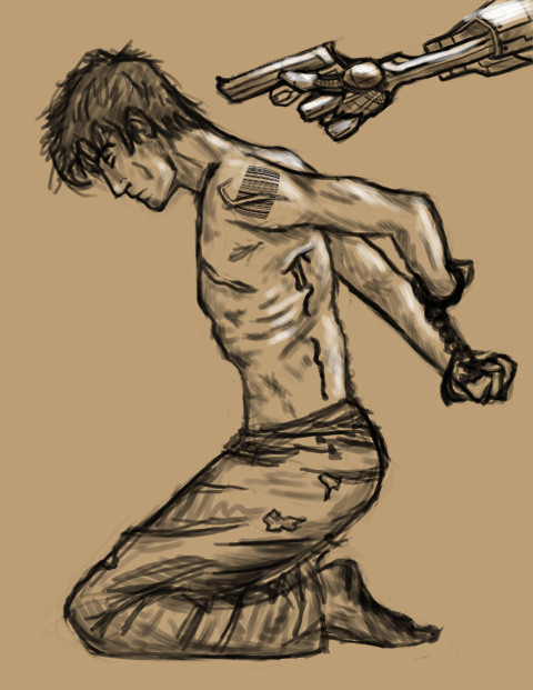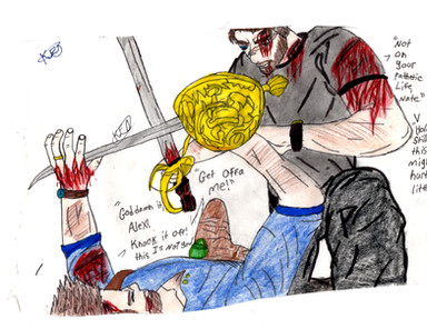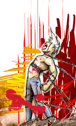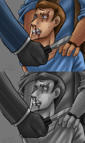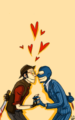 Definitely one of my all time favourite pictures...it's so damn sexy I just freaked out when I first saw it. The tension between them...Sniper's grin and his grip around Spy's wrist...Spy's desperate expression, his clenched fist, his mouth...the blood...the chains...wahaaaaa! *shivers* Just awesome. And very inspring ^_<