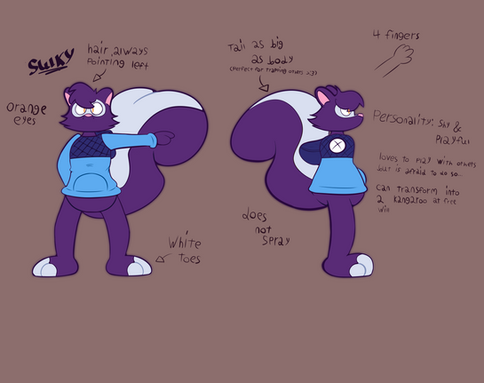 Tenia ganas de hacer mas canguros, asi que decidi dibujar la forma de canguro de Sulky, queria tambien hacerlo en una pose juguetona.