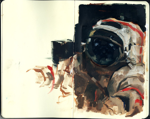 Really like the cubistic (I'm an amateur on this, so correct me if i'm wrong) elements in here. The two faces, one maybe slightly tilted. What i like the most is that it seems to be chaotic at the beginning, but the pieces are layered from the outside to the inside and are covered by the faces, which don't seem to mind the borders of the cut-apart pieces, as if to bring chaos together into the system "person".