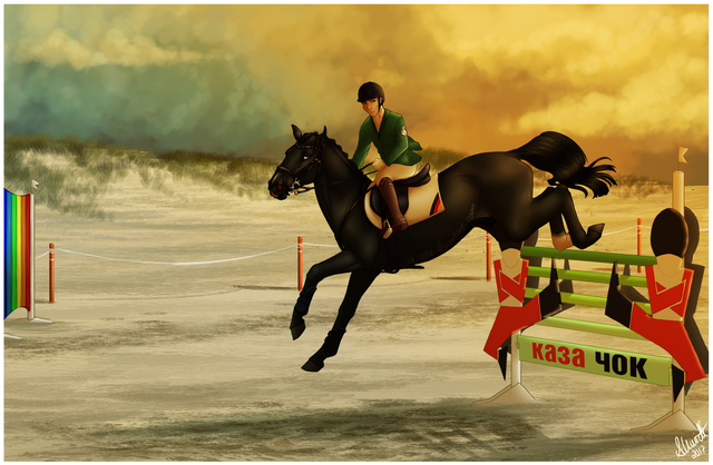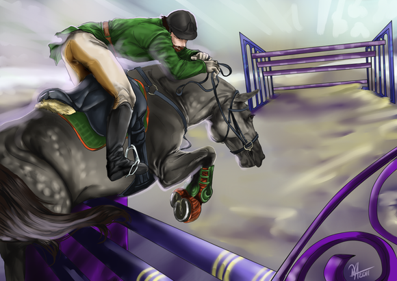 One thing that Emil did have to give Puddle was that the mare had heart. The minute that she went nose to nose with the ghost of the clock, she was off like a shot, heaving like a small freight train and barreling over the jumps with a magnetizing sense of explosive, frenetic energy. She was easier to corral and direct in the home arena --as most horses were, given the sheer number of distractions present at the show grounds--but the man did have to say, he liked her sense of good old, infectious, unrelenting enthusiasm.